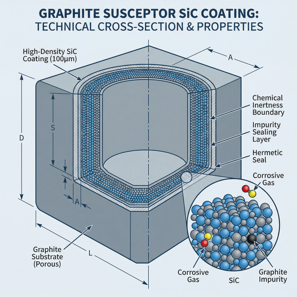 MOCVD বা এপিটাক্সিয়াল প্রক্রিয়াগুলিতে, গ্রাফাইট সাসেপ্টরগুলির সাধারণত উচ্চ-কার্যকারিতা আবরণের প্রয়োজন হয়। উদাহরণস্বরূপ, একটি সিলিকন কার্বাইড (SiC) আবরণের ঘনত্ব সরাসরি সাবস্ট্রেটের মধ্যে অমেধ্য সিল করার ক্ষমতা নির্ধারণ করে।